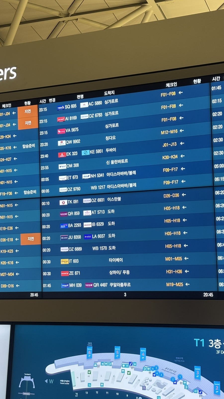 H 게이트에서 수속을 마친 뒤 셔틀을 타고 115번 게이트로 이동했습니다.