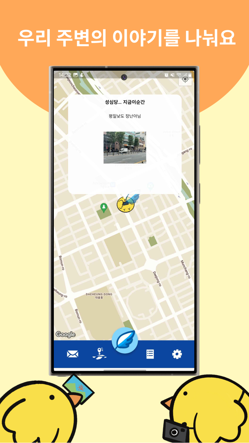 지도에 쫑알새를 띄워서 이야기를 주고받는 SNS 서비스입니다.