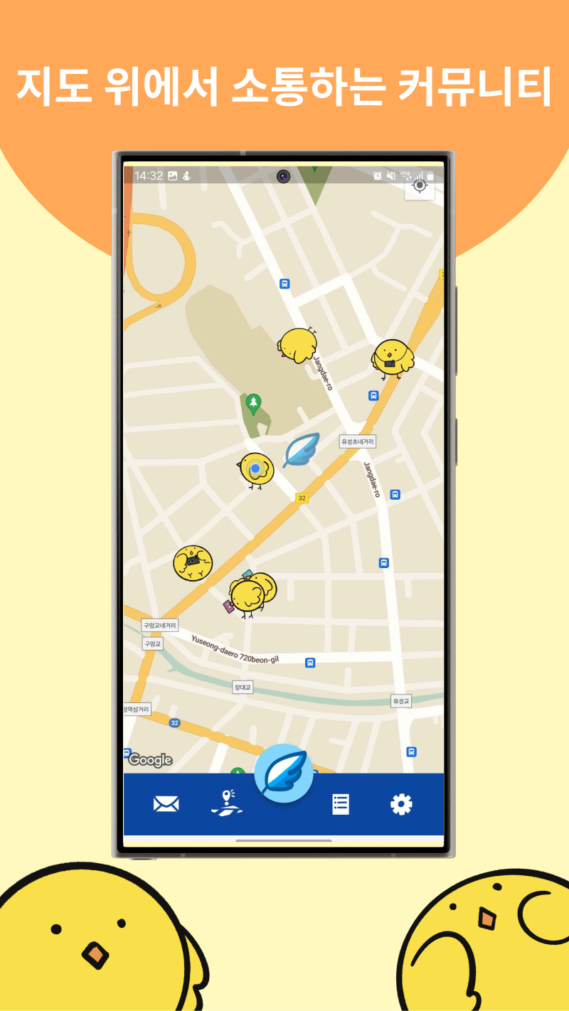 지도에 쫑알새를 띄워서 이야기를 주고받는 SNS 서비스입니다.