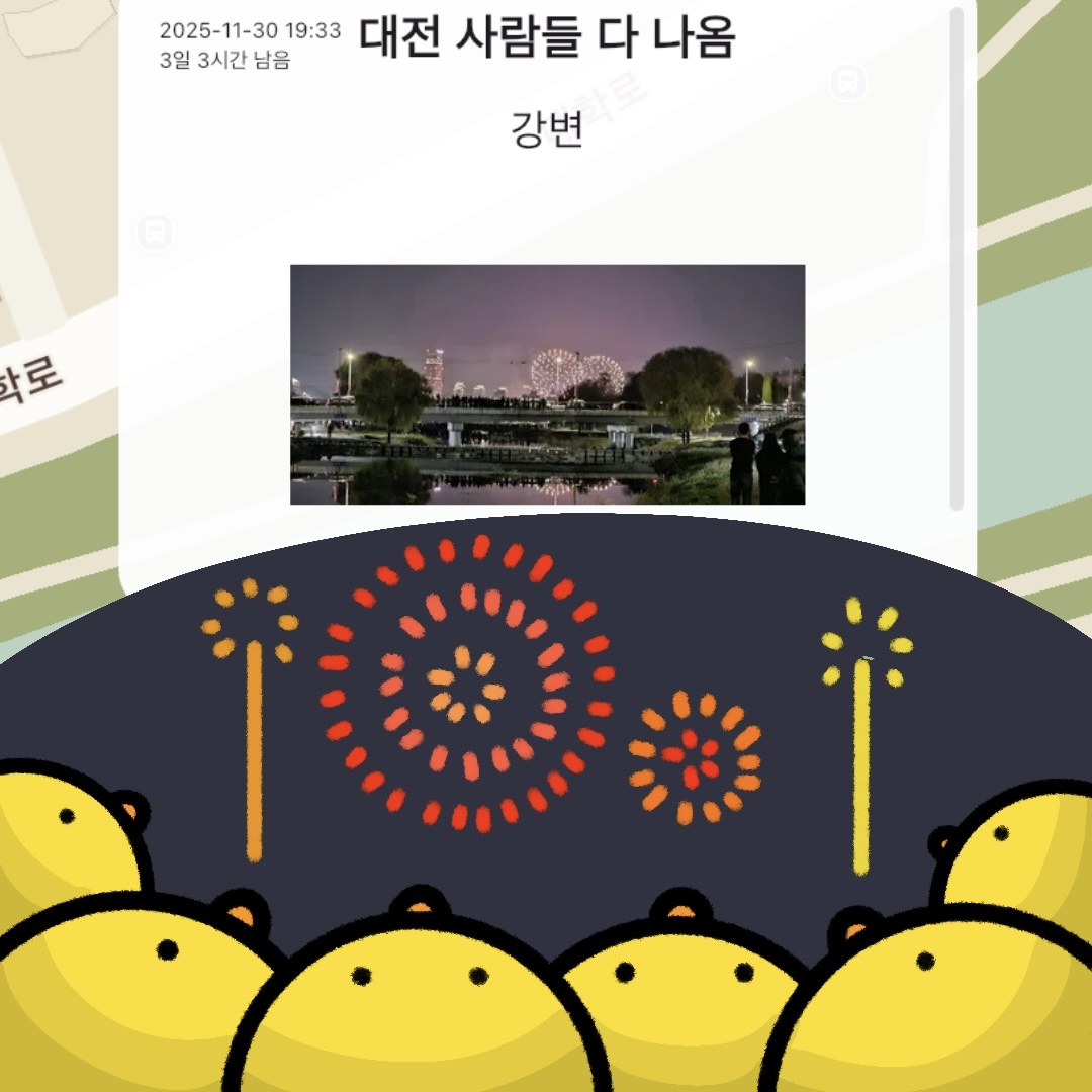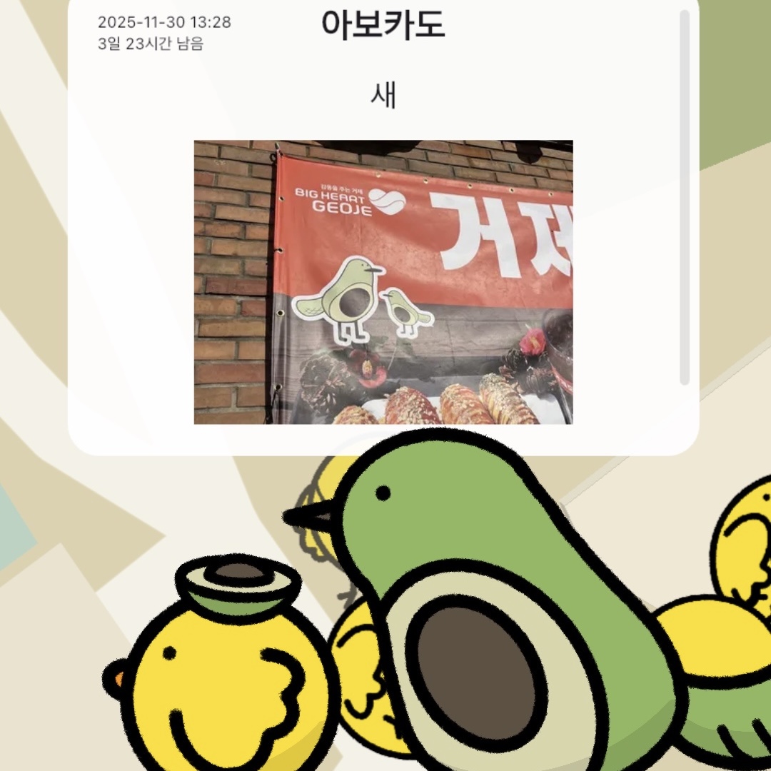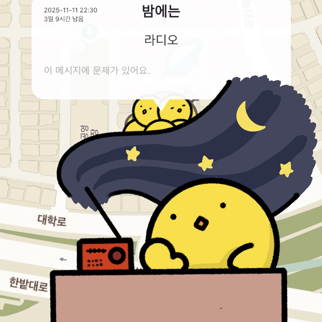 쫑알새가 배고파지면 집에 가야 하기 때문에 일정 시간이 지나면 메시지가 사라집니다. 지금 이 순간의 이야기를 사람들과 나눠보세요.